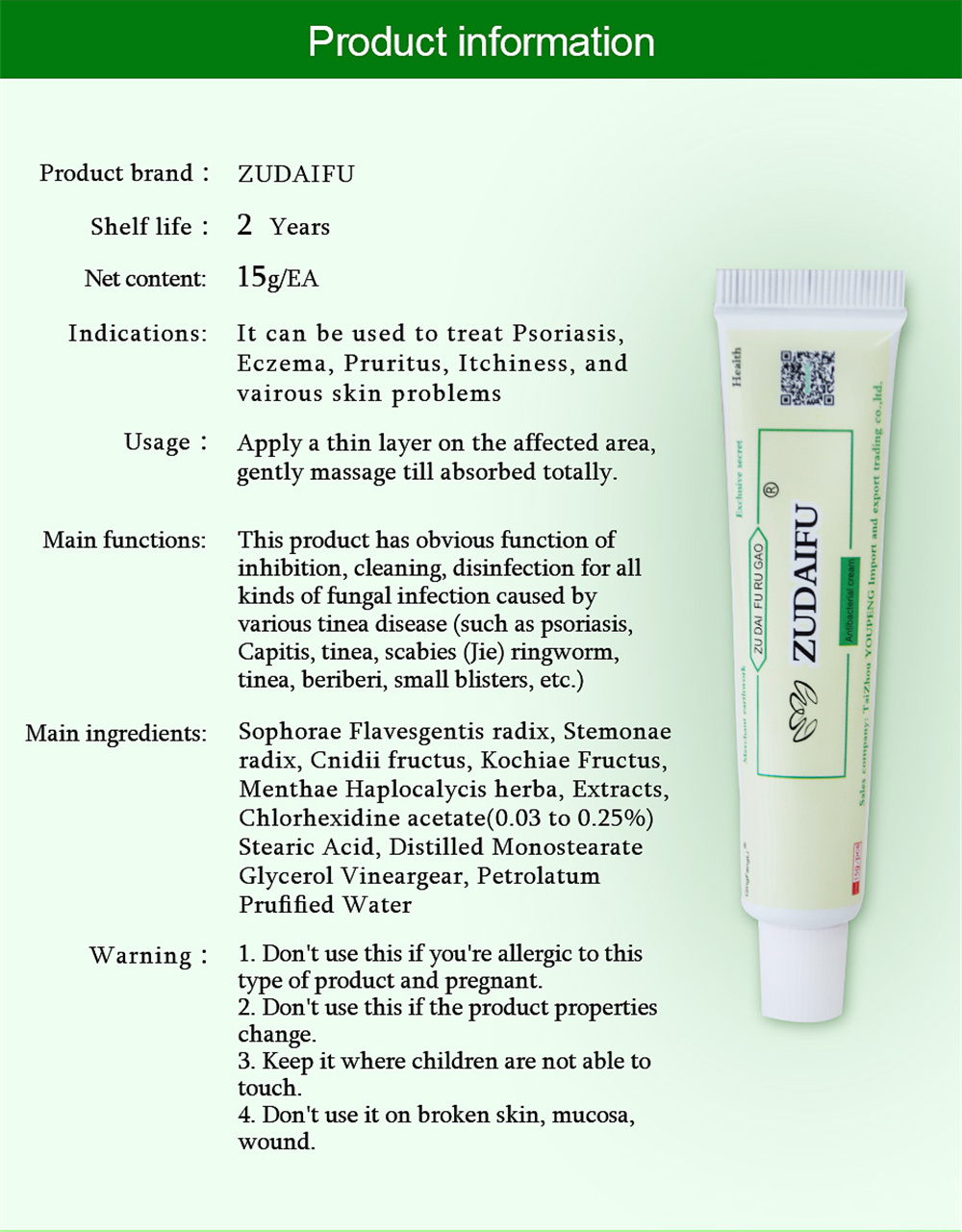 ZUDAIFU Cream: Designed to address local skin issues, it provides moisturization and care, alleviating symptoms such as itching and dryness.