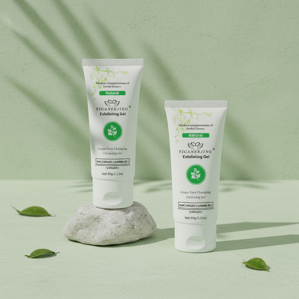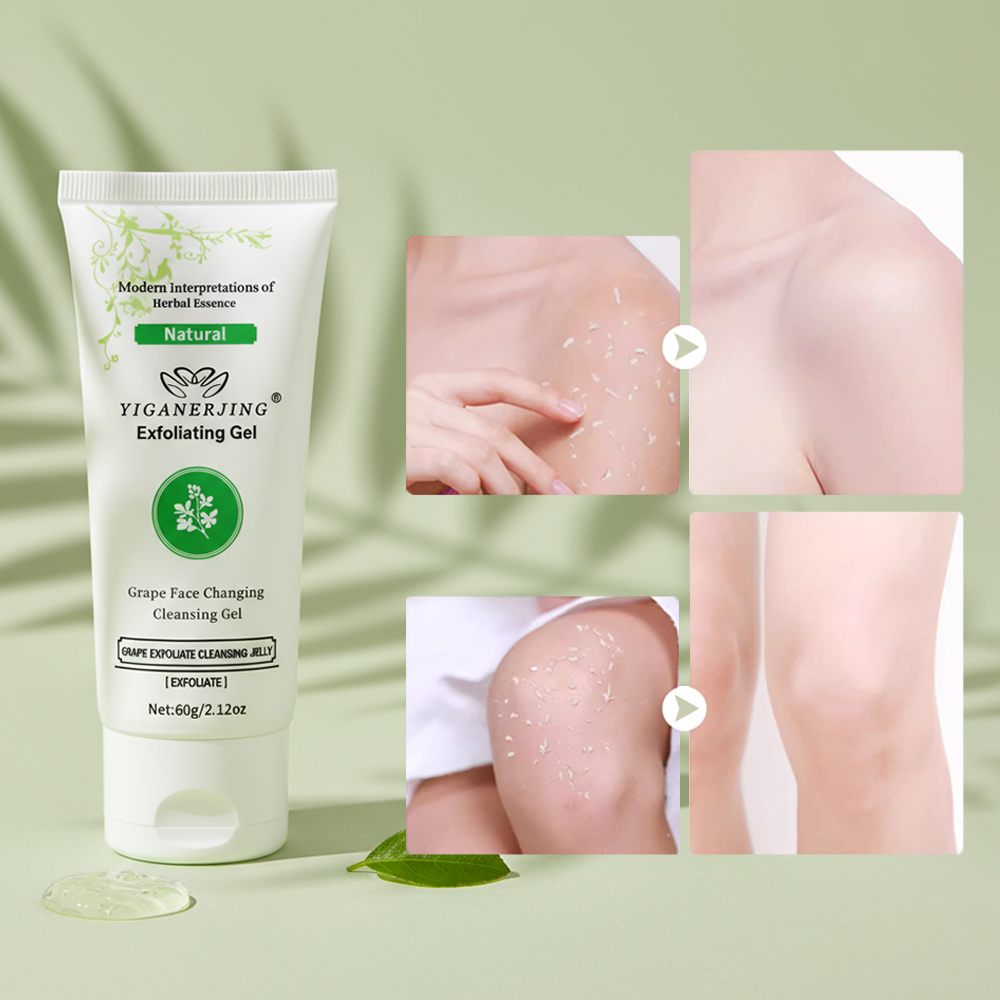 YIGANERJING Moisturizing Exfoliating Gel Cleanser - a 60g gentle formula that removes dead skin cells, revealing smoother, revitalized skin. With a refreshing fresh grass fragrance, it also provides moisturizing benefits for a radiant complexion.